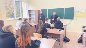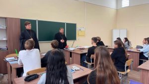12 ноября, по благословению благочинного Сакского церковного округа протоиерея Иоанна Пристинского, клирики Сакского благочиния иерей Максим Пустовый (помощник благочинного по религиозному образованию и катехизации) и иерей Александр Сапунов (помощник благочинного по молодёжному служению) провели встречу-беседу со студентами Сакского технологического техникума.