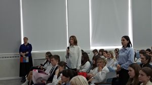 Начальник отдела образования администрации города Саки Лилия Алексеевна Кузубова, директор МБОУ «Школа-лицей им. Героя Советского Союза Ф.Ф. Степанова» Алёна Валерьевна Симонова, специалист по сопровождению проектов и программ Ресурсного центра “Навигаторы Детства” Республики Крым, Маметова Маире Шевкетовна муниципальный координатор проекта Навигаторы детства города Сак Елена Чернявская, Председатель Совета местного отделения Движения города Саки Марина Ципоркина, советники директора по воспитанию школ города, учащиеся всех школ города, студенты Сакского технологического техникума и преподаватели школы собрались в уютном актовом зале, где их ждал вдохновляющий диалог с выдающимся человеком.