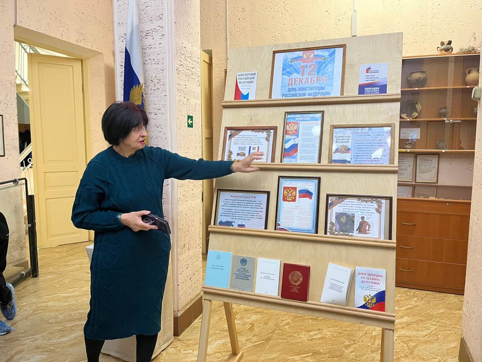 Экскурсовод Кара М.Д. познакомила студентов с основными этапами формирования Конституции России начиная с первой Конституции 1918 года и заканчивая современным текстом 1993 года, ныне действующим в стране.