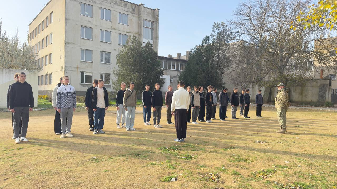 18.11.2025г. руководитель кружка «Казачья доблесть» Одокиенко В.А. организовал для студентов Сакского технологического техникума занятия, где будущие мужчины осваивали искусство построения и марши.