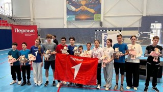 По итогам зарядки наградили 12 самых активных участников памятными призами — мягкими игрушками.
