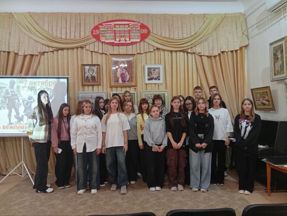 07.10.2025г. обучающиеся Сакского технологического техникума посетили городской музей, где для них было организовано литературное мероприятие на тему: «Жизнь моя, иль ты приснилась мне…», которое провела директор музея — Н.В. Латышева совместно с научным сотрудником С.Г. Кондратюк.