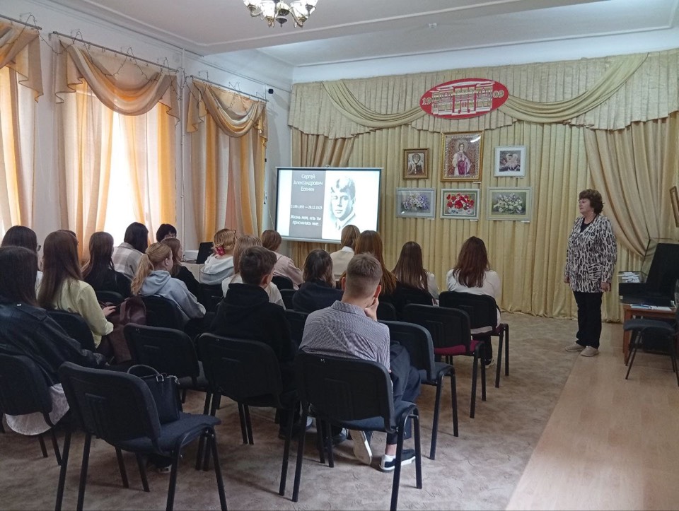 Во время мероприятия ребята познакомились с биографическими фактами из жизни поэта, услышали рассказы о ключевых моментах творчества Есенина и прослушали прочтение известных стихотворений. Особое внимание уделялось таким произведениям, как «Исповедь хулигана», «Письмо матери», «Черёмуха».