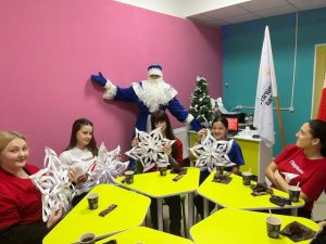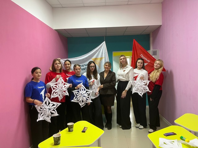 – Мастер-класс по созданию снежинок: Вместе мы вырезали красивые, объемные снежинки из бумаги для украшения школы и техникума к Новому году.