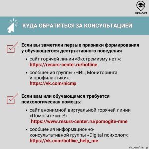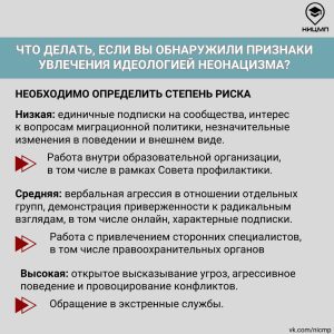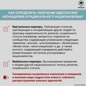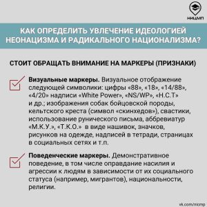 Как распознать проявления деструктивной идеологии и как правильно реагировать – читайте в карточках НИЦ Мониторинга и профилактики, а также изучайте маркеры определения группы риска.