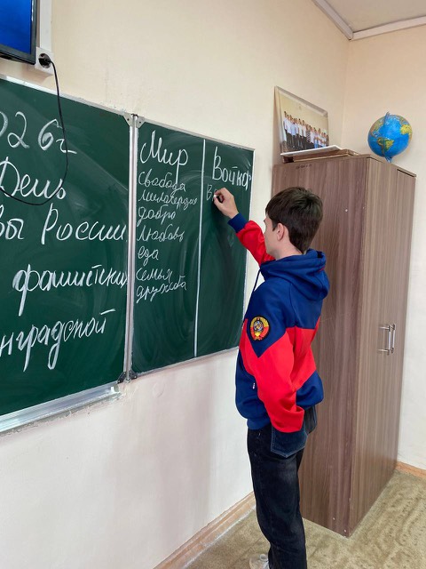 Преподаватель дополнительного образования Момонт Екатерина Федоровна в рамках воспитательной работы провела мероприятие для обучающихся «Казачьей» группы 1 СПП 5, посвящённое Дню Воинской Славы России. Основной темой урока стало празднование разгрома фашистских войск в Сталинградской битве, ставшего символом героизма и мужества советского народа.