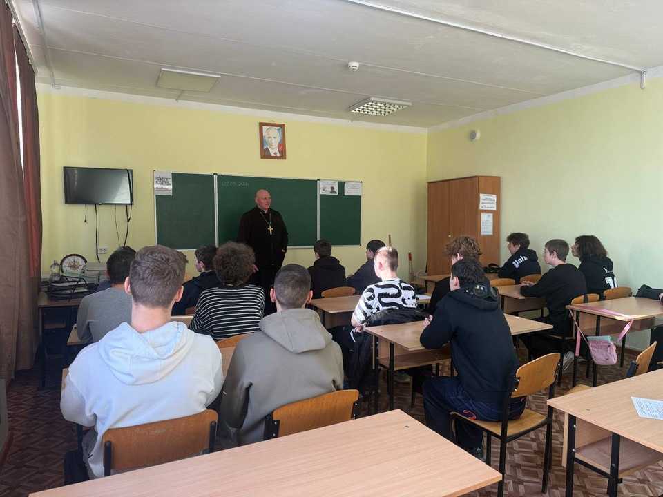 2 марта 2026 года, в стенах Сакского технологического техникума прошла особенная встреча. Руководитель Сакской дружины Братства Православных Следопытов, иерей Александр Пышинский, провел «Час духовности» для студентов-казаков 1 курса.