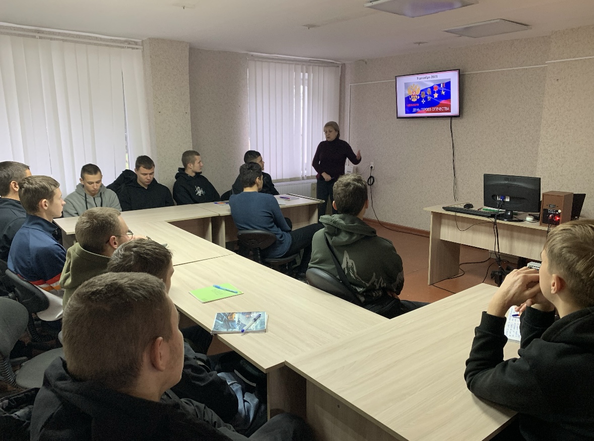 09.12.2025г. библиотекарь Ковалева Н.А. для студентов Сакского технологического техникума провела мероприятие, с целью воспитания у молодежи чувства патриотизма, гордости и уважения к историческому прошлому и героическому настоящему Родины.